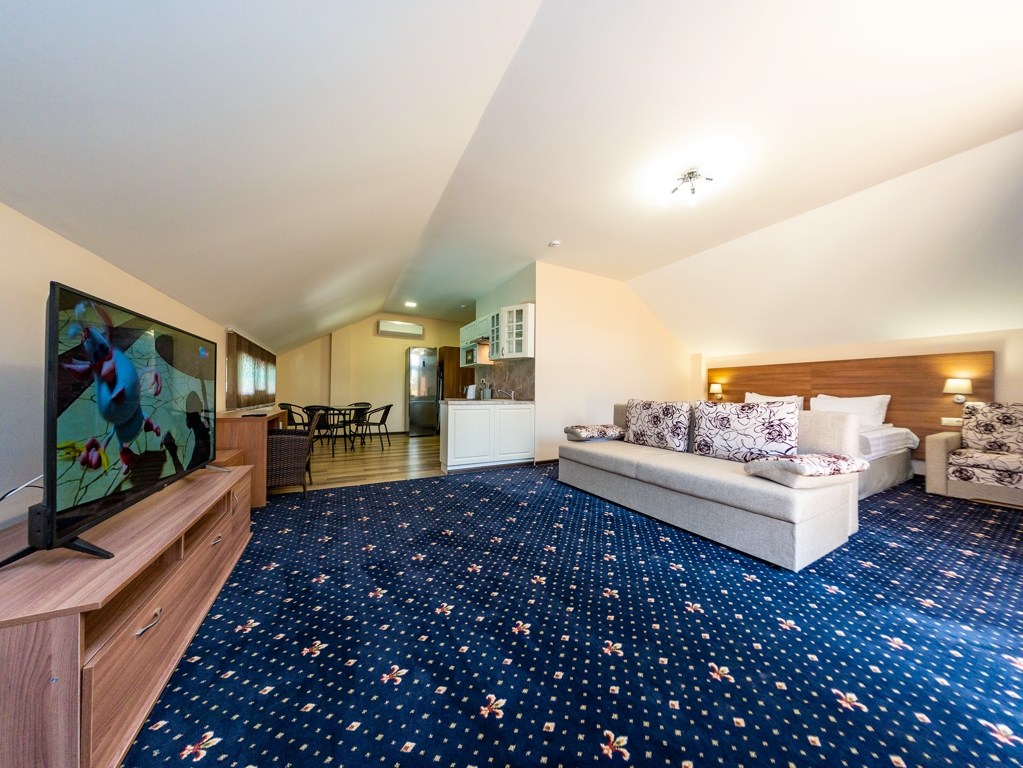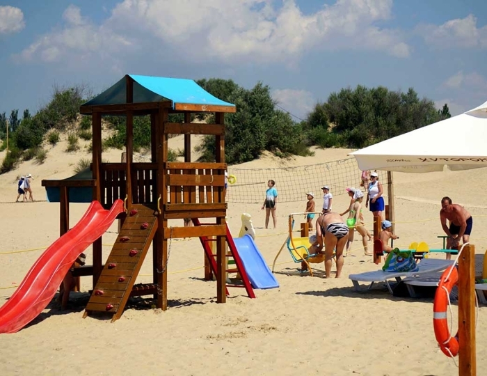Всего в 300 м от комплекса находится собственный песчаный пляж, который оборудован всем необходимым для комфортного отдыха. На пляже предусмотрен спасательный пост. Посетители смогут воспользоваться здесь шезлонгами, зонтиками, кабинами для переодевания, детской игровой зоной, волейбольной площадкой.